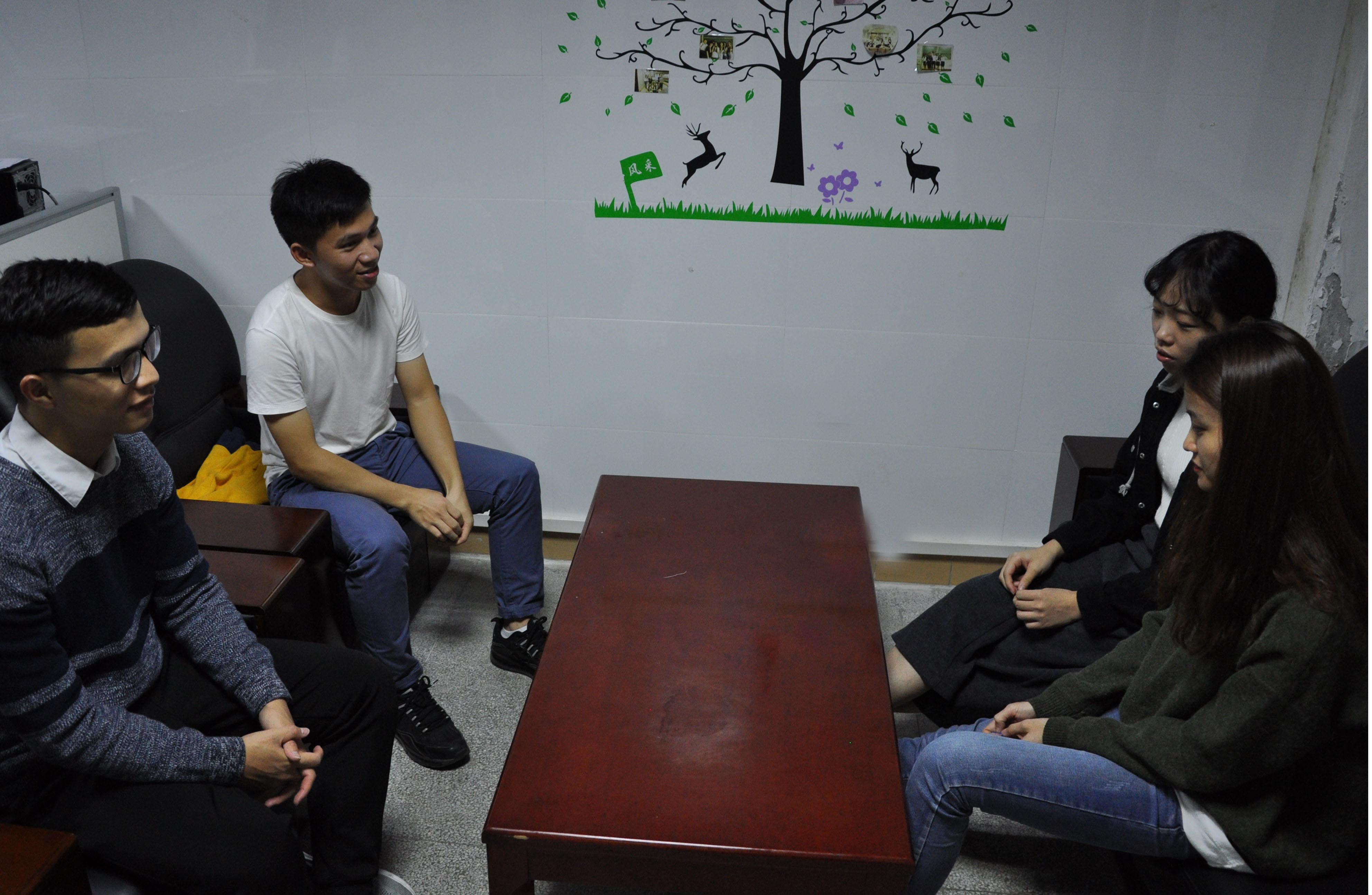 11月20日晚,sunbet,sunbet官网党总支学生党支部班子成员谈心谈话活动于莞城校区3206办公室举行,学生党支部副书记何宝珠,组织委员曾海通,纪检委员陈华春,宣传委员袁华铭出席本次会议。