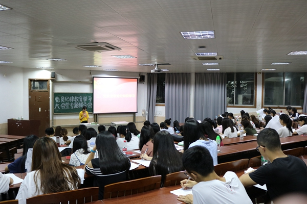 随后,学院学生党建办公室主要学生干部详细讲解了线上知识测试的安排,紧接着学生党支部副书记何宝珠带头学习党章党规党纪的一些重要内容。最后,全体党员开展现场党章党规党纪知识测试,与会人员认真作答。